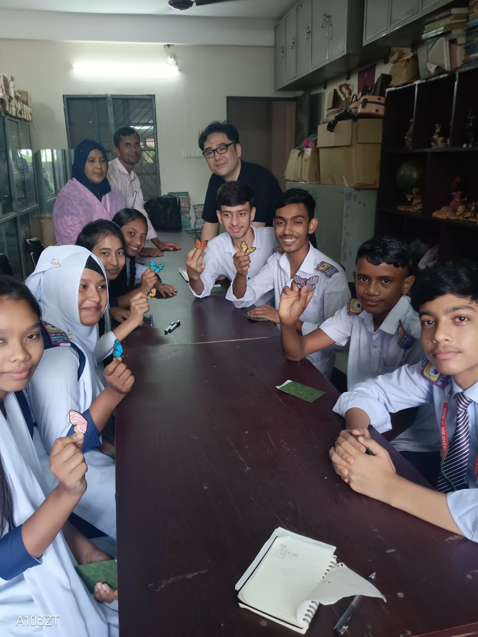 そして、ユニフォーム問題に加え、新商品提案タイム!私たち3人が持ち込んだアイテムを披露。アクセサリーやバッグ、日本の駄菓子まで。まるでバングラデシュ版「なんでも鑑定団」。皆さんの反応も上々です!